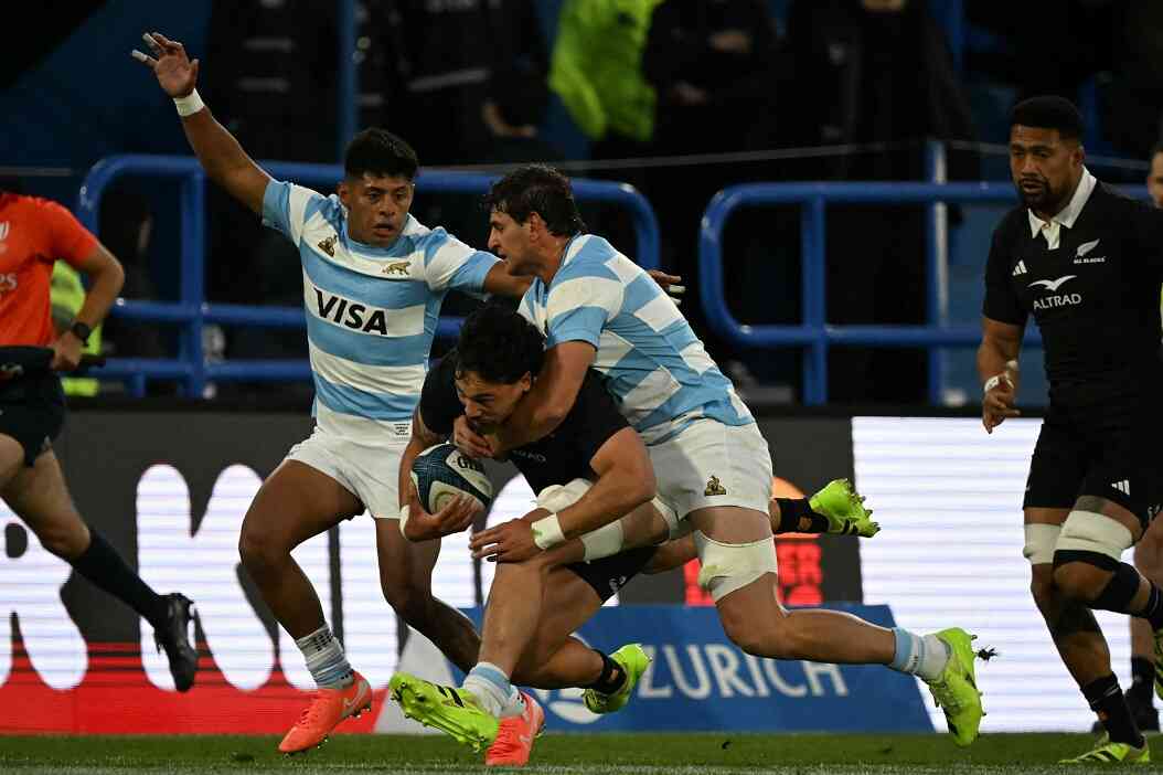 Con dos jugadores menos, los All Blacks defendieron en los instantes finales de la primera parte y lograron evitar dos tries de Los Pumas, que no pudieron aprovechar situaciones muy concretas de ponerse en ventaja.