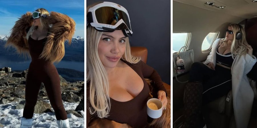 Uno de los puntos fuertes del viaje fue el vestuario elegido para la nieve. Wanda combinó prendas deportivas con ítems de moda de invierno. En una de sus postales más comentadas, lució un catsuit térmico al cuerpo de color marrón chocolate. Para completar el look, sumó una campera oversize de piel sintética, antiparras blancas con elástico negro y botas blancas. El estilismo, funcional para bajas temperaturas, conservó su impronta de glamour con maquillaje sutil, anillos dorados, peinado suelto y un gorro de lana con el detalle de un león bordado.