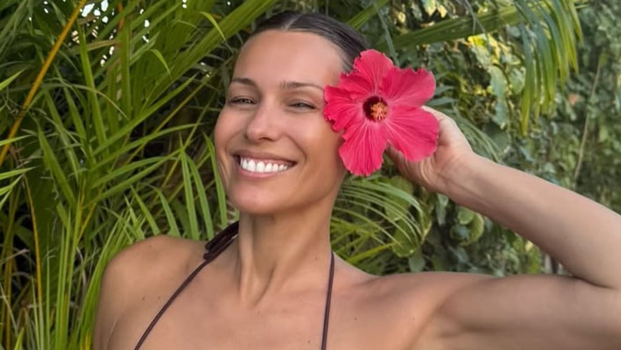 Pampita combinó un corpiño de microbikini con calzas y una flor en el pelo