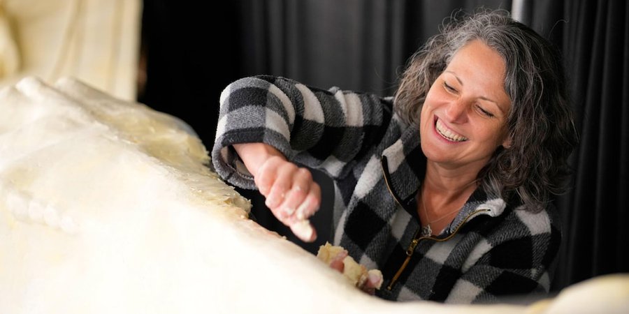 En cambio, la Renwick Gallery solicitó una escultura completamente nueva, diseñada para resistir un año completo en exhibición. Para asegurar la durabilidad, la familia realizó en 2024 una réplica de prueba en un pequeño refrigerador: una figura de Caroline Shawk Brooks, considerada pionera de la escultura de manteca en el siglo XIX.