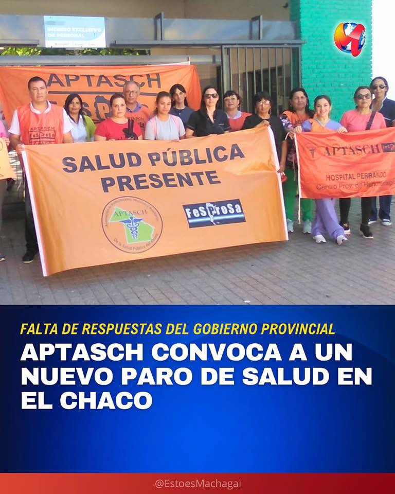 Ante la falta de respuestas del Gobierno provincial y el agravamiento de la crisis en el sistema sanitario, la Asociación de Profesionales, Técnicos y Auxiliares de Salud Pública del Chaco (Aptasch) anunció un nuevo paro de 24 horas para el viernes 4 de abril.