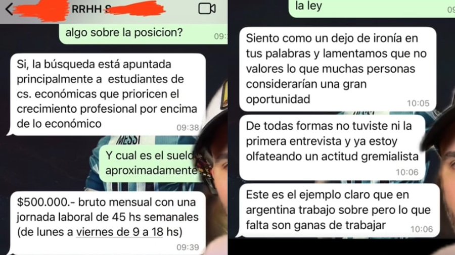 A través de una conversación por WhatsApp que rápidamente se volvió viral, Ramiro, un joven que buscaba su primer empleo, recibió una oferta laboral que terminó en un inesperado cruce con el departamento de Recursos Humanos.