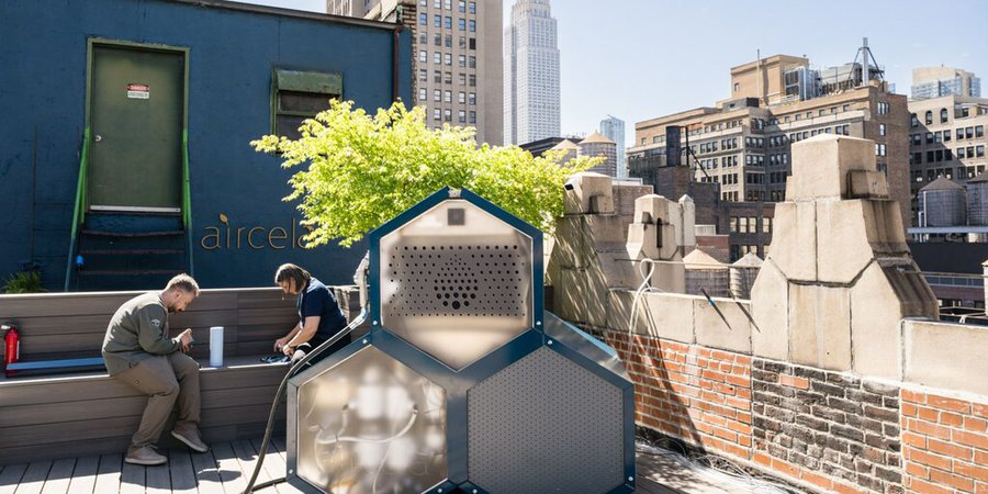 El sistema presentado por Aircela incluye tres grandes módulos hexagonales azules, dos en la parte inferior y uno apilado encima, que se encargan de dividir y operar las distintas etapas del proceso: la captura de CO₂ y la síntesis de la gasolina. El dispositivo se alimenta con aire, agua y un suministro eléctrico que, idealmente, proviene de fuentes renovables.