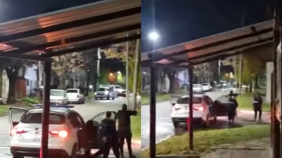 Ocurrió en la esquina de Balbastro y Brandsen. El agente se entregó e investigan si además tuvo una crisis de salud mental. El momento quedó grabado.