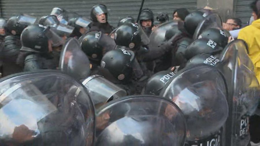 Luego de que el cronista fuese auxiliado por efectivos policiales, la situación escaló: un grupo de personas comenzó a empujar, insultar y lanzarles piedras a los agentes.
