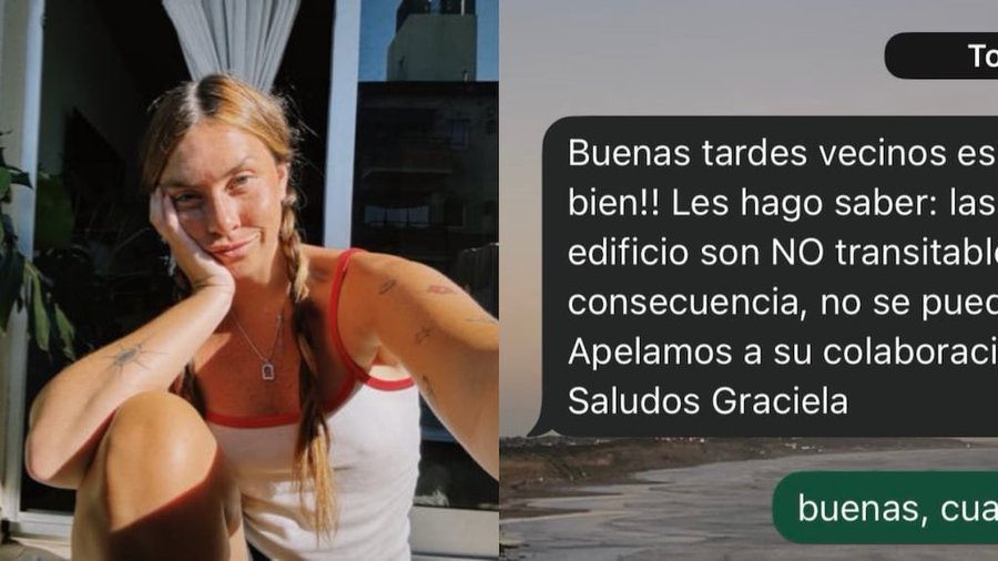 En el posteo, mostró el texto que le llegó: “Buenas tardes vecinos. ¡Espero que estén muy bien! Les hago saber: las terrazas del edificio NO son transitables, en consecuencia, no se puede ir a tomar sol. Apelamos a su colaboración, gracias. Saludos, Graciela”.