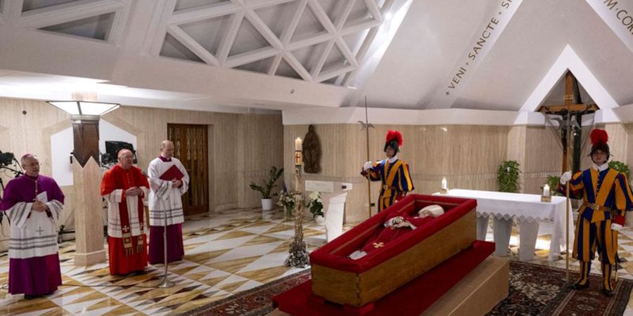 Al término de la misa, el féretro será trasladado a la basílica de Santa María la Mayor, en Roma, para ser enterrado según la voluntad del propio pontífice, expresada en su testamento. El cuerpo del Papa se encuentra actualmente en la capilla de la residencia Santa Marta, donde falleció el lunes a los 88 años a causa de un ictus.