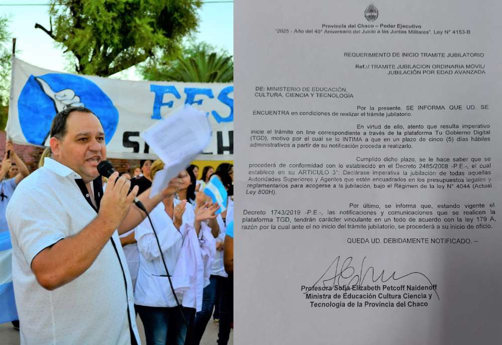 Es Chaco dialogó este jueves con Damián Kuris, secretario general de Fesich Sitech Castelli, quien encendió las alarmas al calificar las recientes intimaciones a trabajadores de la educación para acogerse a jubilaciones compulsivas como un “tubo de ensayo” del gobierno provincial que conduce Leandro Zdero. Según el sindicalista, esta medida, que afectó a 1.600 personas con correos electrónicos intimándolas a jubilarse en apenas 5 días, no se limitará al sector educativo, sino que representa el inicio de un plan de “achique” que se extenderá a todos los organismos del Estado chaqueño.