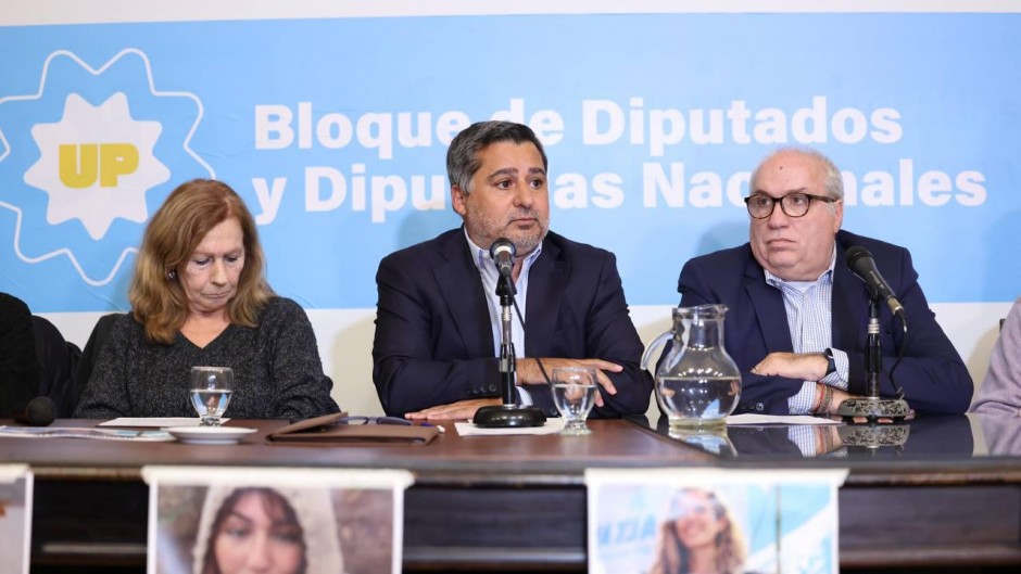 El bloque peronista en la Cámara de Diputados organizó una conferencia de prensa que encabezó el abogado Diego Molea, el rector de la Universidad de Lomas de Zamora, junto a los familiares de Alexia Abaigar, Eva Mieri, Candelaria Montes Cató, Iván Díaz Bianchi y Aldana Muzzio.